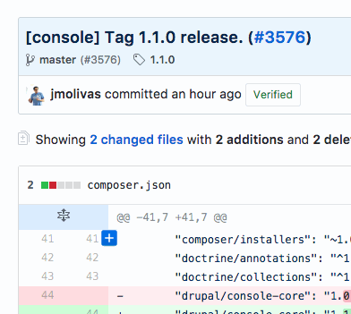 A couple of weeks ago a new version of Drupal console came out. After it was tagged on Github, an update was available through composer. Since Violinist picked this up, it opened up a new pull request on all of my projects that depend on this. That looks something like this: